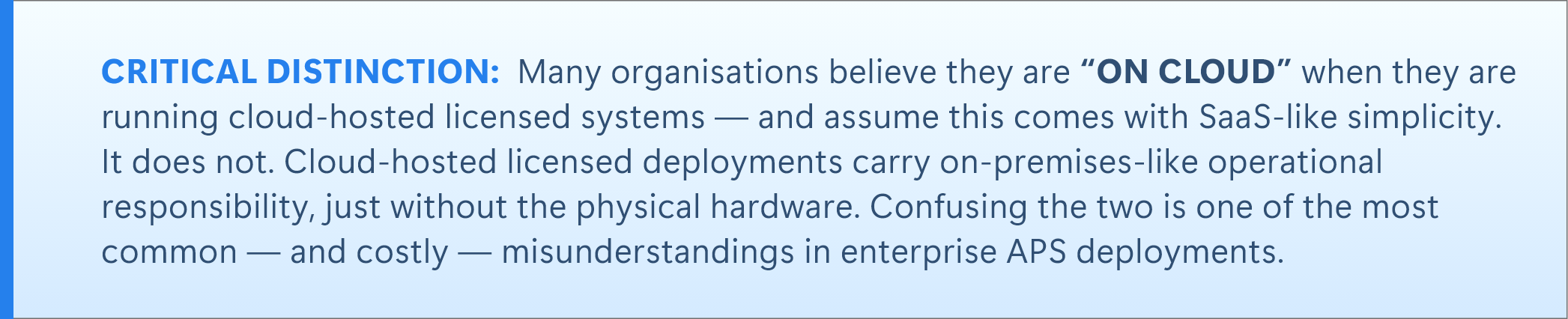 From experience across APS implementations on platforms, the most consequential failures in planning transformations rarely come from the technology itself. They come from misaligned expectations about who owns what — and from deployment model decisions made on vendor recommendation rather than business logic.
