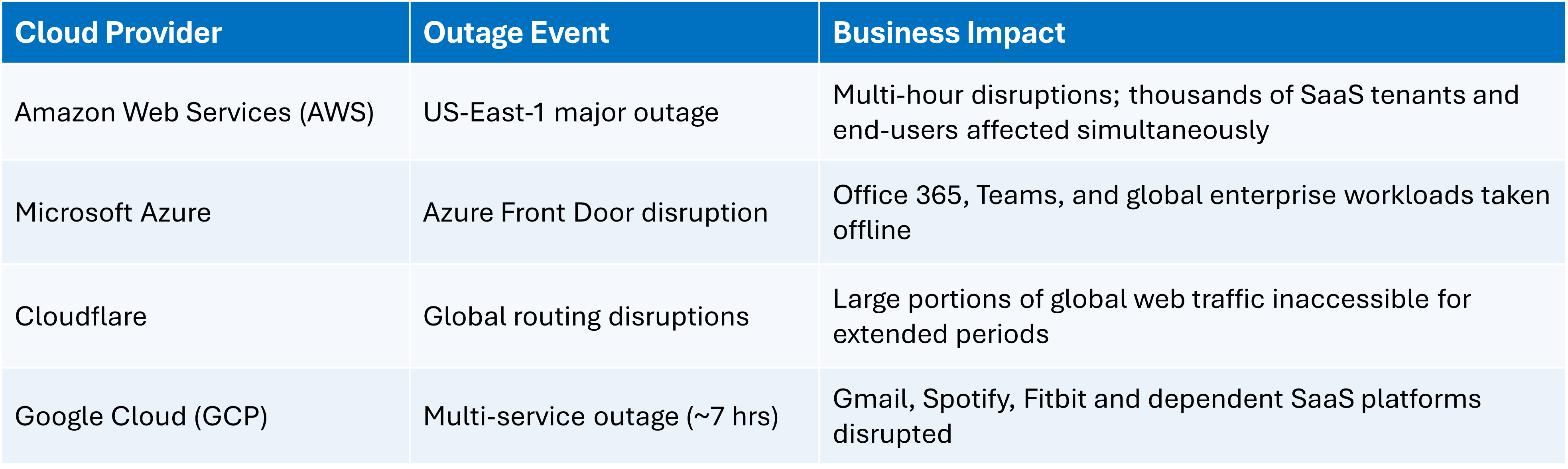 Note: Outage events referenced above are based on publicly reported incidents. Specific dates and impact figures should be independently verified before publication. These examples are illustrative of a broader pattern, not an exhaustive or audited record.