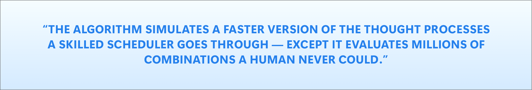 What tools like BY Sequencing do is remarkable. Rather than trying every option, they use a sophisticated algorithm — inspired by how a skilled human scheduler thinks — to intelligently search through the possibilities and find a solution that is not just feasible, but good. Here is what makes it stand out: