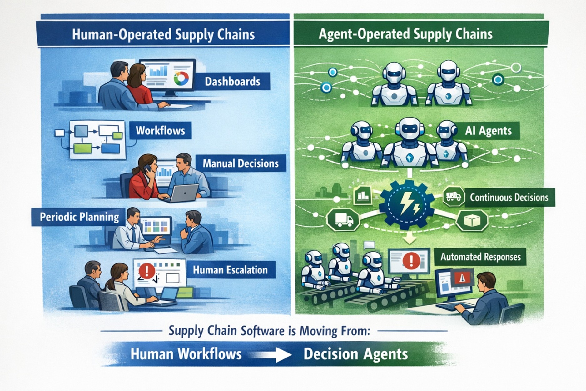 For more than two decades, enterprise platforms were designed to organize information so people could make decisions. But something fundamental is changing. Across both the digital world and the physical world, intelligent systems are beginning to participate directly in decisions — and increasingly execute them. And supply chain software is moving into the center of that shift.