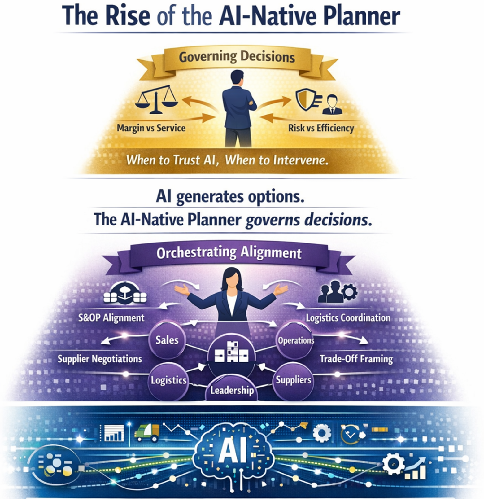 But in the AI era, data interpretation is becoming automated. The new differentiator becomes something else. How well humans make decisions when intelligence is already available. The planner isn’t disappearing. But the job most planners are doing today absolutely is. And the supply chains that recognize this early will operate faster, align quicker, and adapt far more effectively than those still optimizing yesterday’s roles.